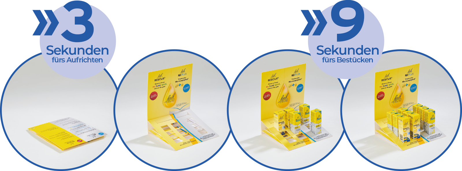 Alle Displays der EasyUP-Serie – vom Theken- bis zum Standdisplay – zeichnen sich durch die geringen Packmaße, den einfachen Aufbau und die maximale Flexibilität in Design und Nutzung aus.