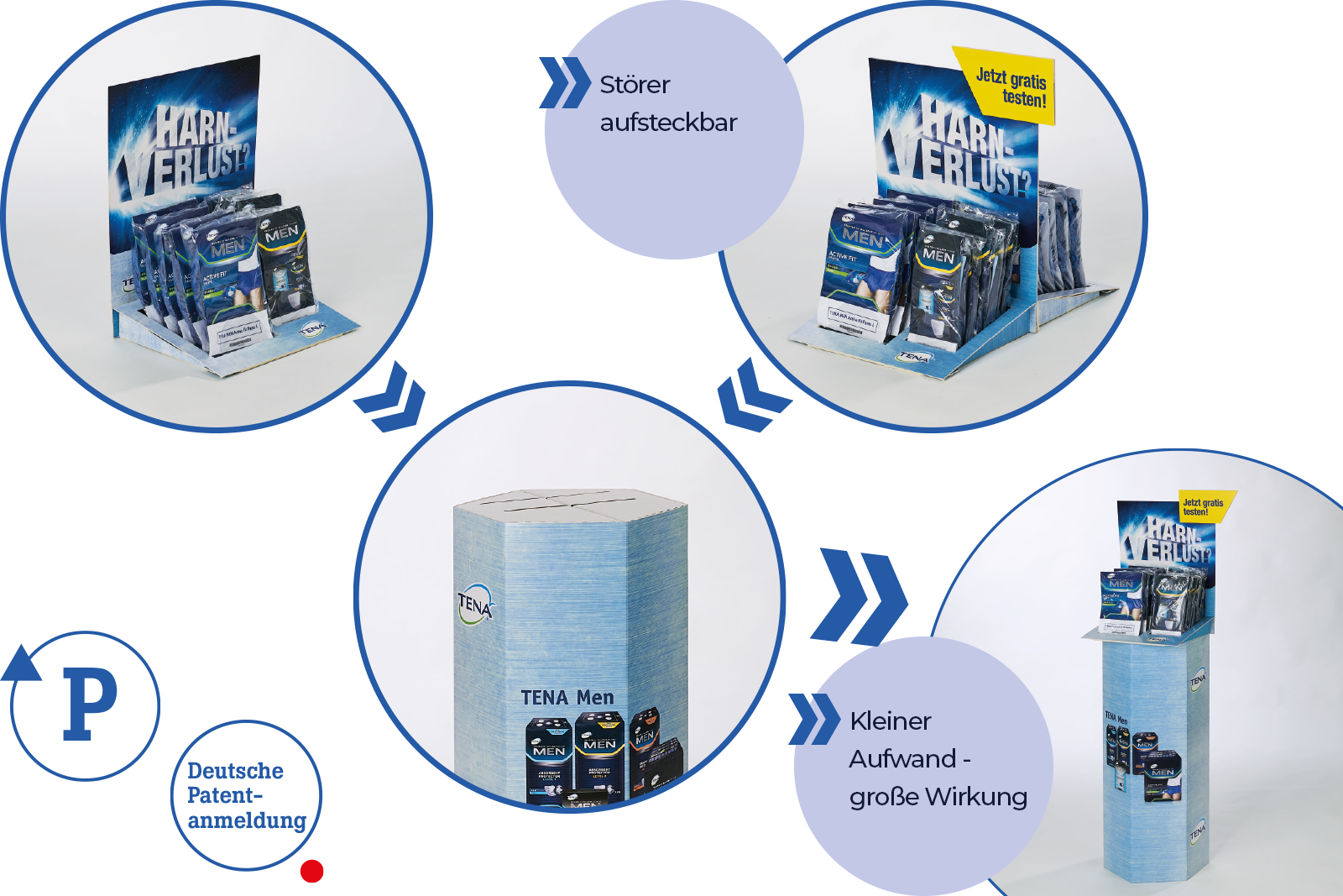 Unser EasyUP-Displaykonzept bietet dir die Möglichkeit einer individuellen Nutzung, abgestimmt auf die Platzverhältnisse am jeweiligen POS. Alle Elemente lassen sich zu einem stabilen, warentragenden Standdisplay für die Platzierung mitten im Raum zusammenfügen. Alternativ ist ein Standdisplay mit einem Warenträger plus Thekendisplay möglich oder eine dekorative Standsäule plus zwei Thekendisplays.